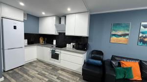 Apartmán disponuje jednou ložnicí, obývacím pokojem vybaveným televizí s plochou obrazovkou, která zahrnuje streamovací služby a videohry, a plně vybavenou kuchyní se myčkou na nádobí, troubou, varnou deskou, mikrovlnnou troubou, toustovačem, lednicí, konvicí a pračkou. Koupelna nabízí buď vanu nebo sprchu bezbariérového typu podle různých potřeb. Jsou zde k dispozici ručníky a povlečení.