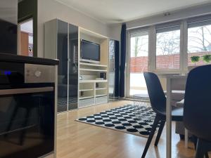 Apartament ma jedną sypialnię, salon z telewizorem z płaskim ekranem i rozkładaną sofą. Kuchnia jest wyposażona w piekarnik i mikrofalówkę. Łazienka zawiera wannę, suszarkę do włosów oraz bezpłatne kosmetyki. W apartamencie są ręczniki oraz pościel z poduszkami niepuchowymi.