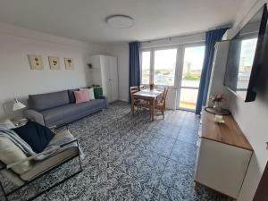 L'appartement comprend une chambre, un salon et un balcon avec vue sur la ville. Il est équipé d'une climatisation, du chauffage, d'un canapé-lit et d'un lit bébé. La kitchenette est équipée d'un réfrigérateur, d'une bouilloire électrique, d'une cuisinière, d'un micro-ondes et d'un lave-vaisselle. La salle de bain privée comporte une douche ou une baignoire.