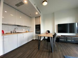 L’appartamento era moderno, pulito e ben attrezzato con angolo cottura, bollitore elettrico, ferro da stiro, asciugacapelli e balcone. Il letto era comodo, non un divano letto o materasso diviso. La posizione era comoda, con i mezzi pubblici proprio davanti all’edificio e diversi negozi di alimentari, bar e ristoranti nelle vicinanze. La vista dall’11° e 12° piano era spettacolare. Check-in e check-out sono stati veloci e senza problemi.