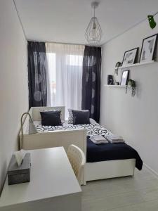 Cet appartement se compose d’un salon doté d’une télévision et d’un canapé, ainsi que d’une cuisine entièrement équipée comprenant un four, un lave-vaisselle, un micro-ondes et une machine à laver. La salle de bains est pourvue d’un sèche-cheveux et d’après-shampoing , les serviettes et le linge de lit sont fournis. L’espace nuit offre des oreillers non duvetés et le chauffage est disponible dans tout l’appartement. Les fenêtres offrent une vue sur la ville.