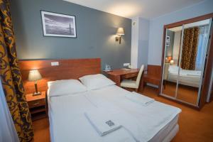 Le petit-déjeuner est servi chaque jour au restaurant sur place qui propose une cuisine polonaise et européenne incluant un menu enfant. Les hôtes ont accès à un bar aménagé dans une ancienne brasserie où sont proposés divers bières ainsi qu'une sélection whiskys et autres boissons alcoolisées. La réception ouverte 24h/24 assure différents services tels que prêt de sèche-cheveux ou matériel pour repassage.
