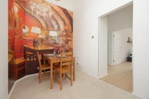 Apartament obejmuje jedną sypialnię, łazienkę z prysznicem oraz w pełni wyposażoną kuchnię z lodówką, zmywarką i piekarnikiem. Do dyspozycji gości jest także pralka, suszarka do włosów oraz telewizor z płaskim ekranem. W apartamencie znajduje się część wypoczynkowa z sofą rozkładaną oraz miejsce do pracy przy biurku.