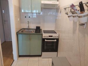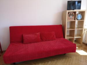 Le logement se compose d’une chambre avec un sol en parquet et un canapé-lit, ainsi que d’une kitchenette entièrement équipée comprenant un four, un réfrigérateur, une bouilloire électrique et une machine à thé et café. La salle de bains dispose d’une baignoire , sèche-cheveux, savon et serviettes sont fournis. Les hôtes bénéficient également d’un téléviseur écran plat pour leur divertissement ainsi que d’un accès internet via Wi-Fi gratuit dans tout l’établissement.
