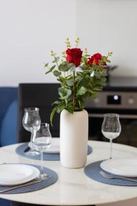 Chaque appartement comprend la climatisation, un coin salon avec canapé et télévision à écran plat, ainsi qu'une kitchenette équipée d'un lave-vaisselle, d'un four, d'un réfrigérateur, d'une machine à café et d'une bouilloire électrique. La salle à manger comporte une table. La salle de bains est pourvue d'une douche à l'italienne, d'un sèche-cheveux et de produits de toilette gratuits.