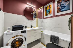 Wola Apt - Parcheggio, Balcone - by Rentujemy a Varsavia offre un appartamento con una camera da letto dotato di parcheggio privato e Wi-Fi gratuito, situato nelle vicinanze del Museo dell’Insurrezione di Varsavia e del Museo della Storia degli Ebrei Polacchi. L’alloggio dispone di balcone con vista sulla città e sul giardino.